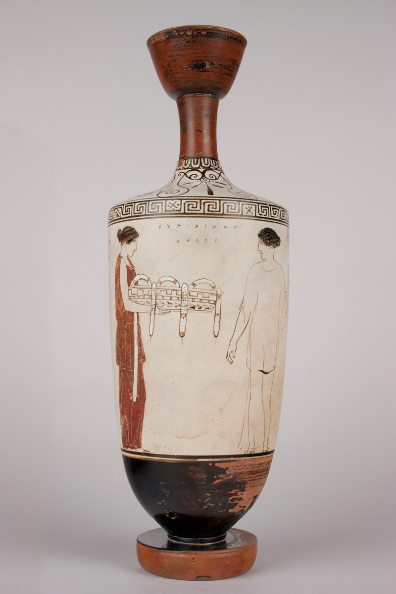 Image: Lekythos representing Two Women Carrying Offerings to the Dead by the Achilles Painter (1900.65)
